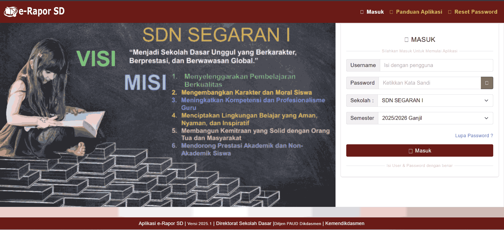E Rapor SDN Segaran 1 Tahun Ajaran 2025/2026 (Link hanya bisa di akses selama proses penilaian)